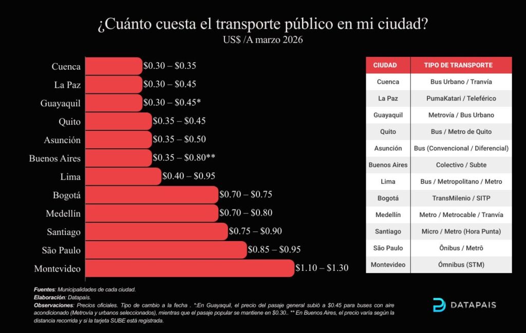 Este contraste no es trivial. En ciudades donde el transporte es más económico, suele existir una mayor presión fiscal o subsidios cruzados, mientras que en aquellas con tarifas más altas, el costo recae en mayor medida sobre el usuario. Además, factores como la integración modal (metro, buses, teleféricos), la calidad del servicio y la congestión urbana influyen directamente en la estructura tarifaria.