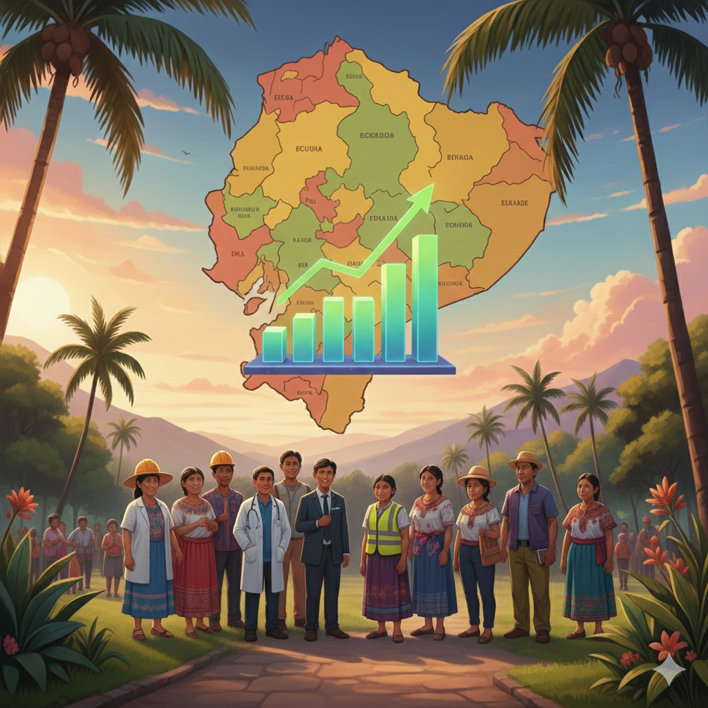 El gráfico muestra la evolución del PIB per cápita del Ecuador en dólares entre 2019 y 2025, una métrica clave para evaluar el desempeño económico desde la perspectiva del ingreso promedio generado por habitante.